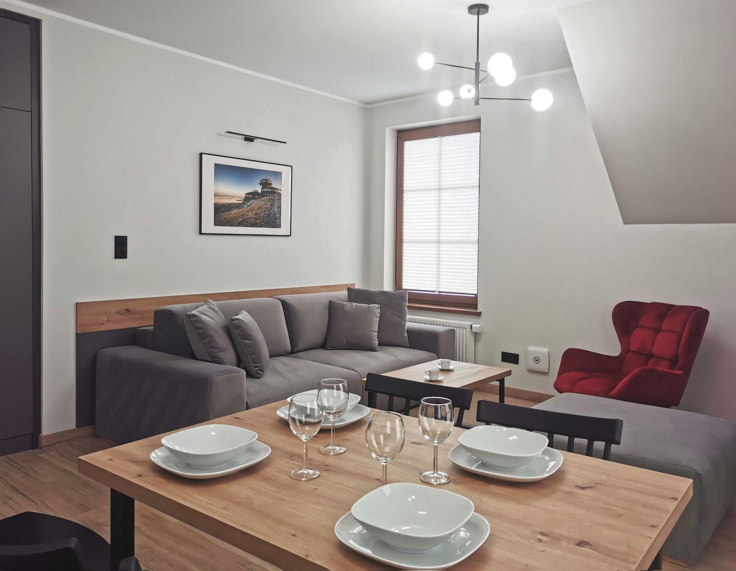Położenie Apartamentów Karkonosz jest wyjątkowe – w sąsiedztwie obiektu znajduje się zarówno restauracja, jak i sklep spożywczy. Niedaleko, zaledwie kilka kroków od apartamentu, mieści się jeden z najpopularniejszych wyciągów narciarskich w Karpaczu, Winterpol, co stanowi dodatkowy atut lokalizacji.